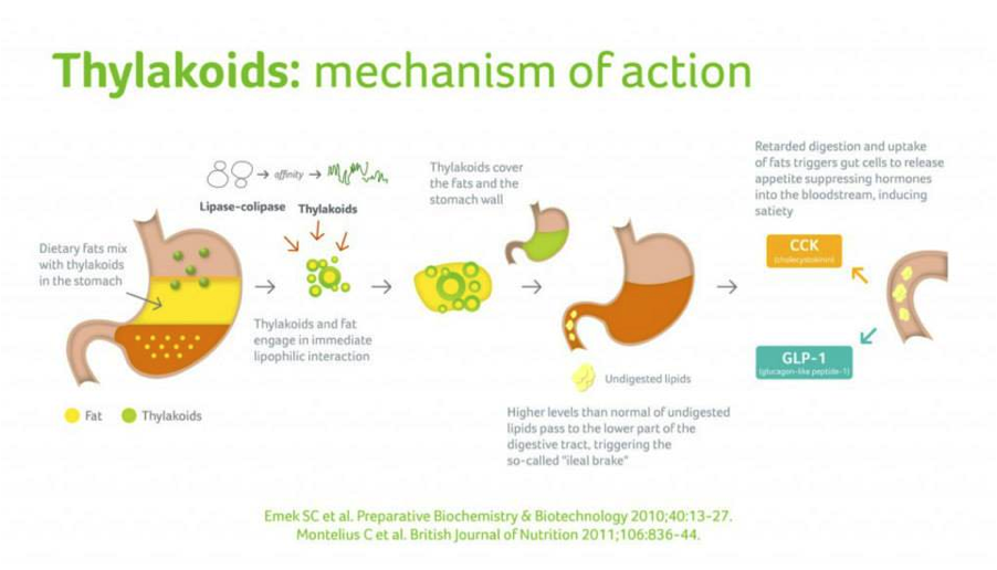 Greens and living foods contain a substance known as thylakoids. These slow fat digestion resulting in prolonged satiety. Fat in the stomach stimulates appetite-suppressing hormones and so by slowing fat digestion; more of these hormones are released, keeping blood levels high longer and your brain satisfied!